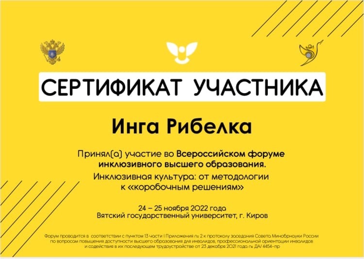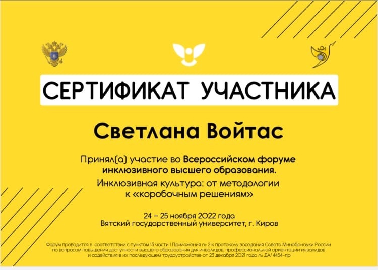 Команда нашего Центра приняла участие во всероссийском форуме инклюзивного высшего образования «Инклюзивная культура: от методологии к «коробочным решениям»», организованном Вятским Государственным университетом.