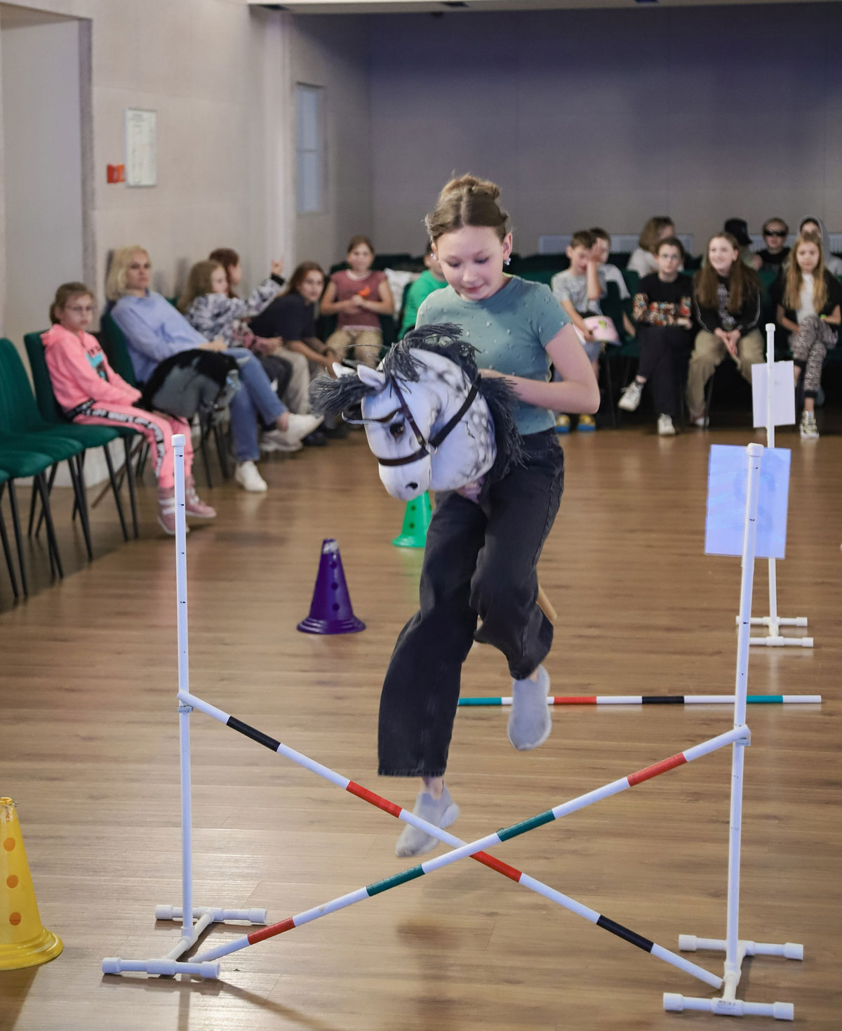 Попробуйте просто так взять и перепрыгнуть через препятствие, да еще и на хоббихорсе, без подготовки)