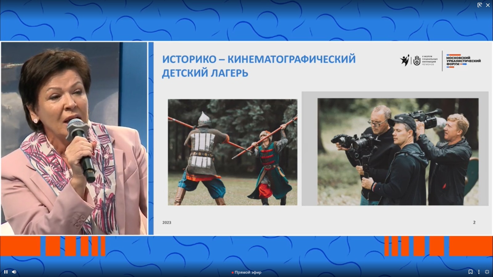 Е. З. Ульянова – спикер площадки выступила с сообщением о созданном в рамках историко-патриотического проекта «Каникулы в историю» фильме «Богатыри Земли Русской» (рабочее название). Фильм создавался на базе ГБОУ Центр реабилитации и образования № 7, где воспитанники учреждения участвовали в реконструкциях обычаев, знакомились с духовными основами и традициями русских героев.