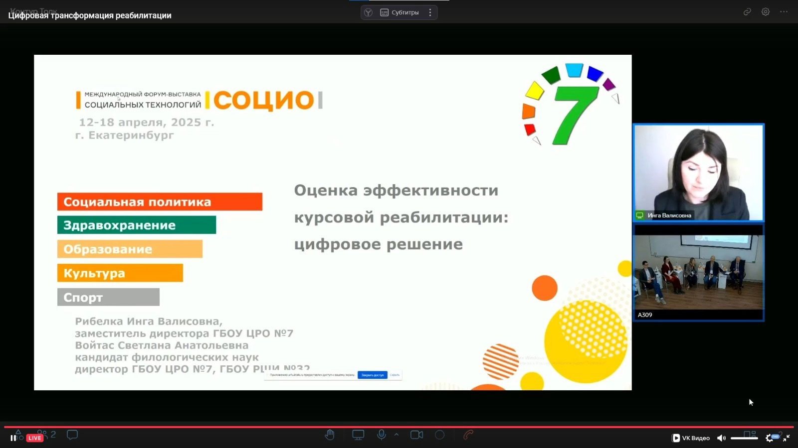 16 апреля административная команда Центра приняла участие в Международном форуме-выставке социальных технологий «СОЦИО» в г. Екатеринбурге. Специалисты презентовали опыт оптимизации реабилитационного процесса при работе с детьми с ограничениями жизнедеятельности. Команда выступила на секции «Цифровая трансформация образования» с докладом по теме «Оценка эффективности курсовой реабилитации: цифровое решение»