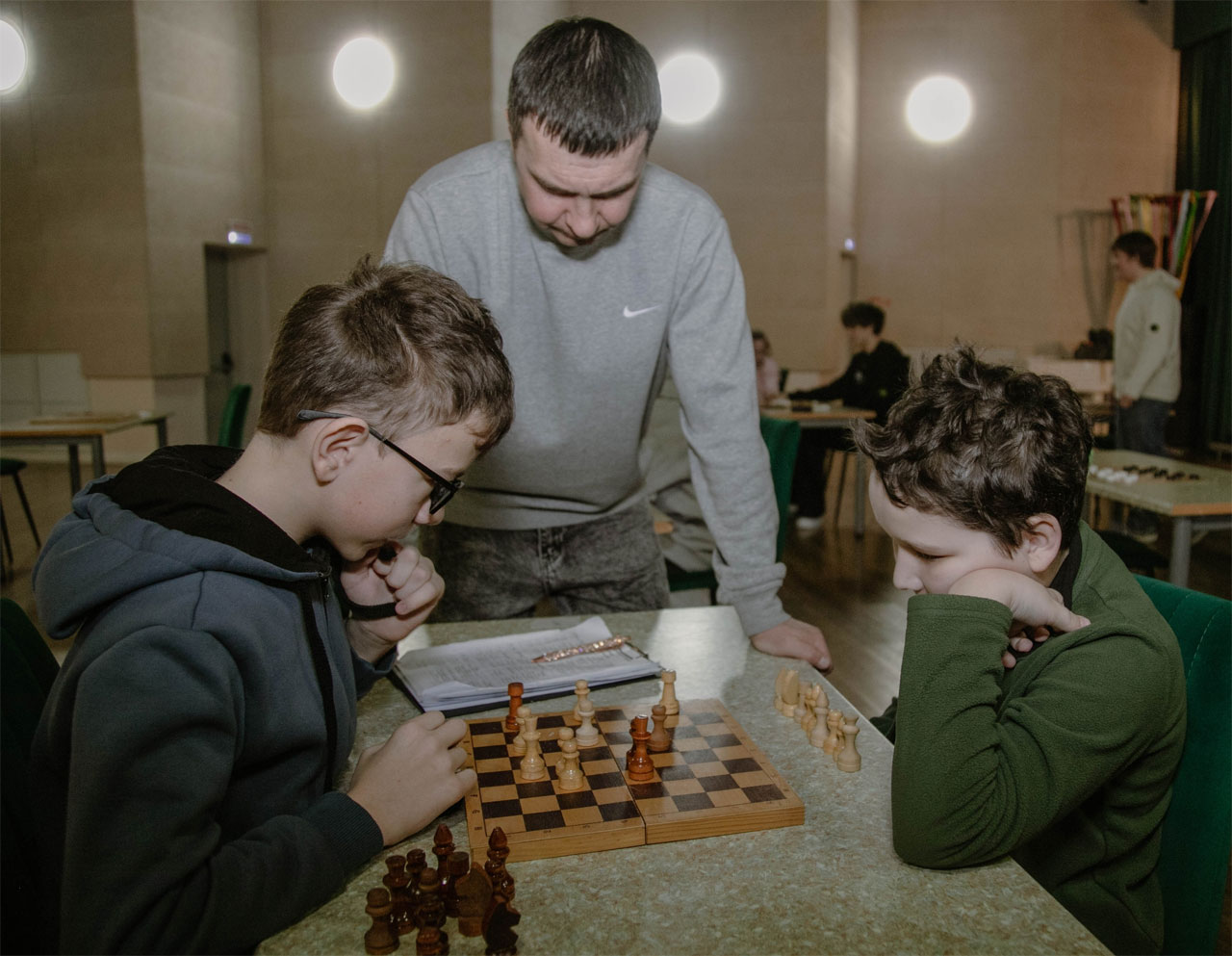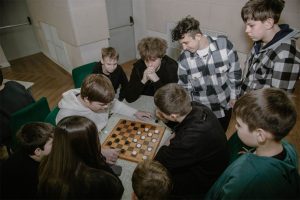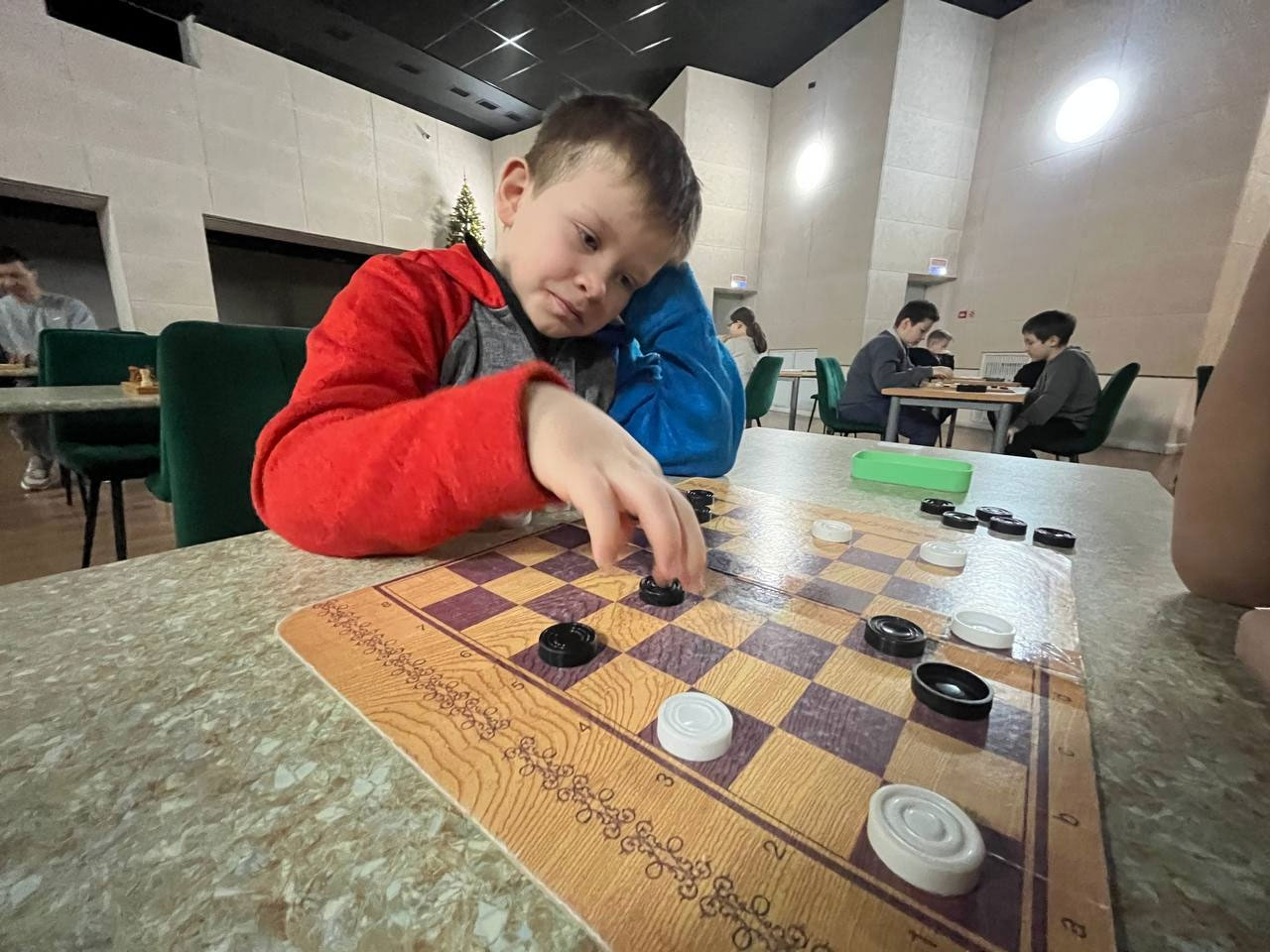 У нас состоялся турнир по шахматам и шашкам. Желающих принять участие было так много, что турнир растянулся на целый день.